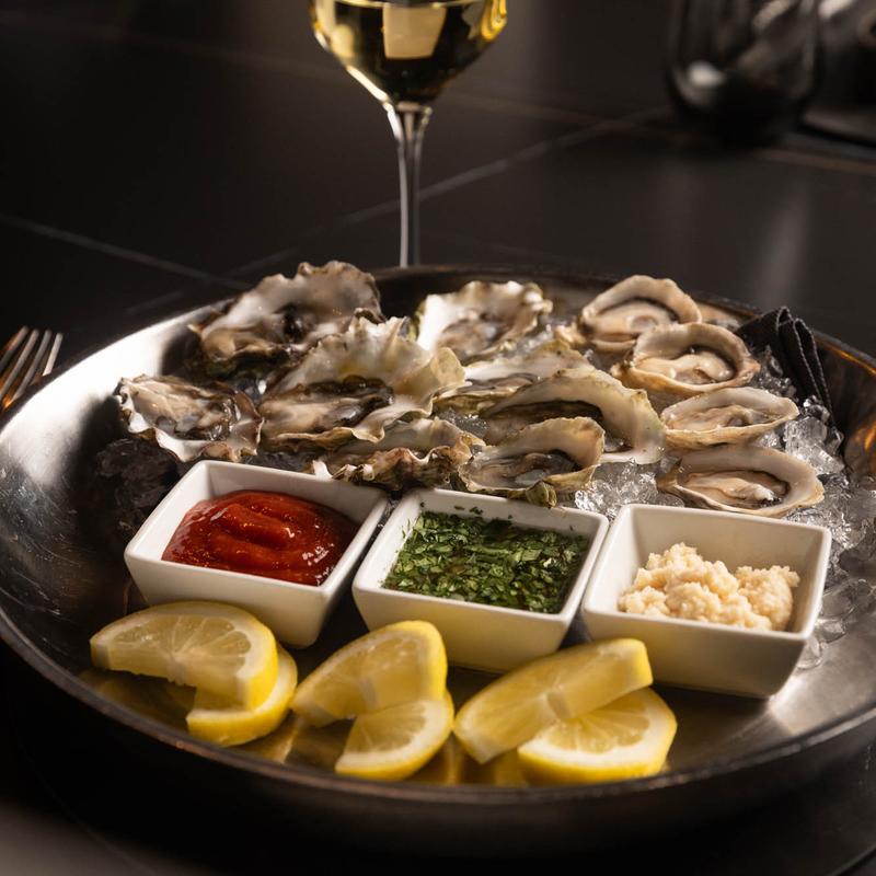 Half Dozen $30.00 | Full Dozen $58.00 • Fresh ginger and jalapeno mignonette, house cocktail, fresh lemon.